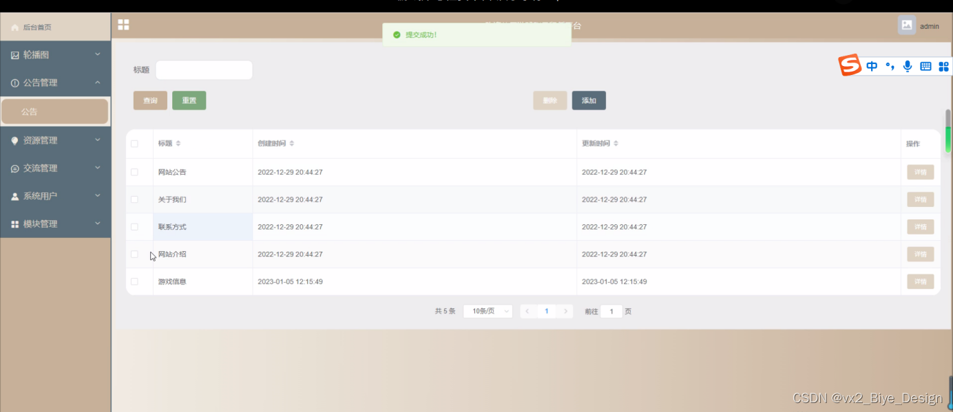 | 输入完整的公告信息” | 提示“公告添加成功” | 测试公告录入是否可用 |