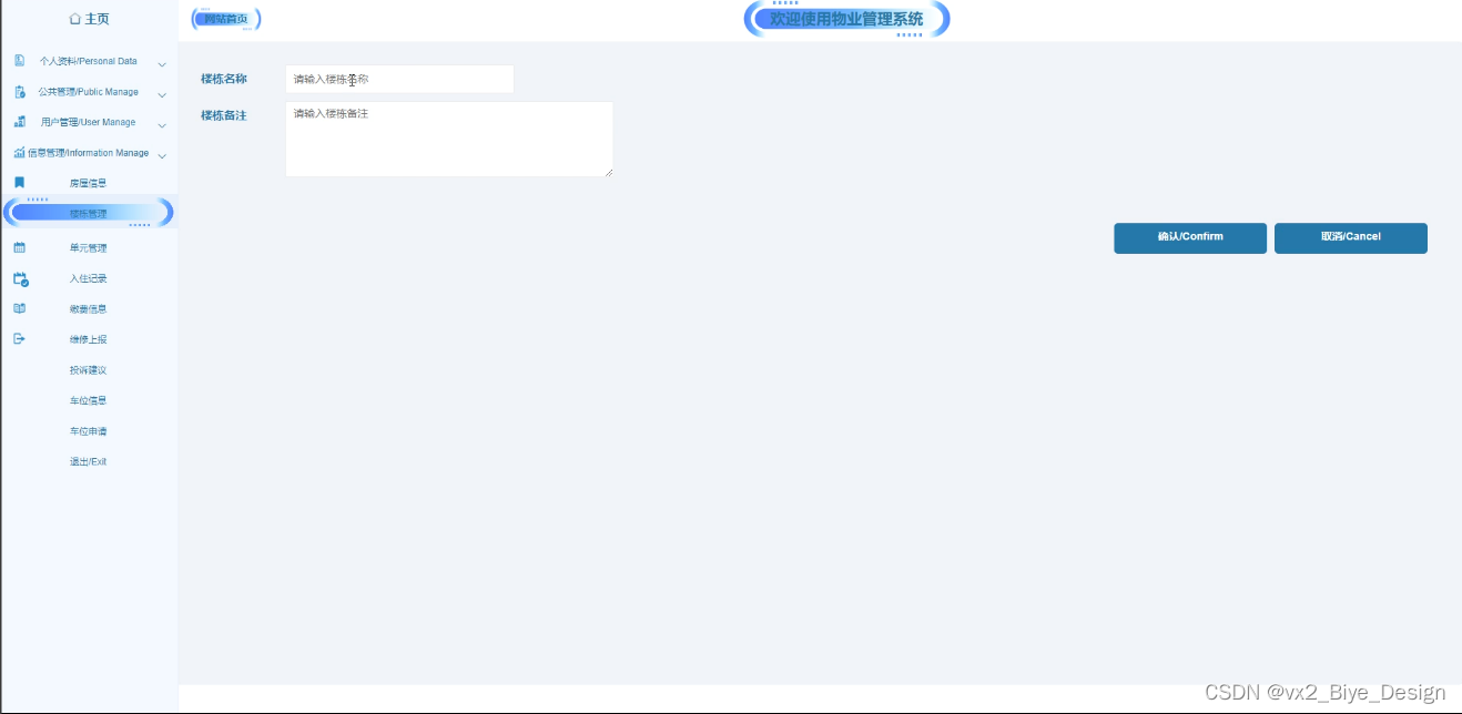 楼栋管理,在楼栋管理页面中通过填写楼栋名称、楼栋备注等信息,还可以根据需要进行修改或删除等详细操作,如图5-8所示。