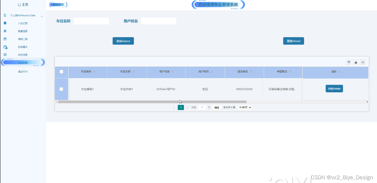 随着社会的发展,计算机的优势和普及使得物业管理系统的开发成为必需。物业管理系统主要是借助计算机,通过对个人资料(个人信息、修改密码)、公共管理(轮播图、公告栏)、业主管理(管理员、业主业主)、信息管理(房屋资讯、资讯分类)、房屋信息、楼栋管理、单元管理、入住记录、缴费信息、维修上报、投诉建议、车位信息、车位申请等信息进行管理。减少管理员的工作,同时也方便广大业主对物业信息的及时查询以及管理。