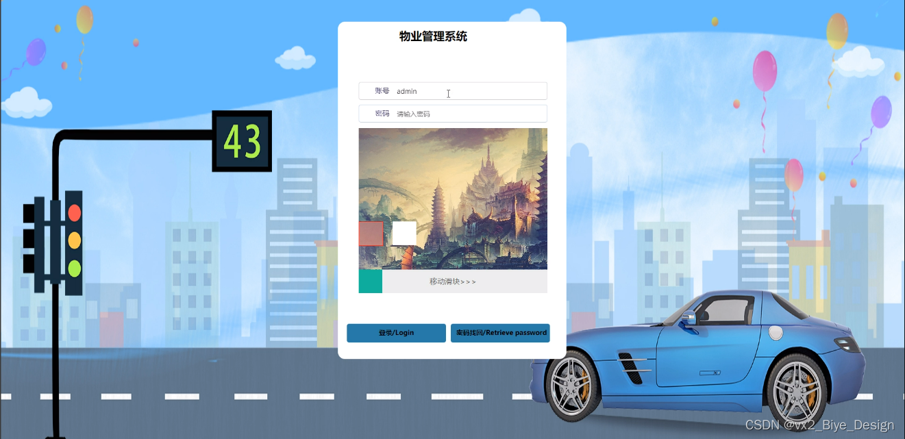 管理员登录,管理员通过输入界面上显示的信息然后移动滑块就能登录到系统进行系统的使用了,如图5-5所示。