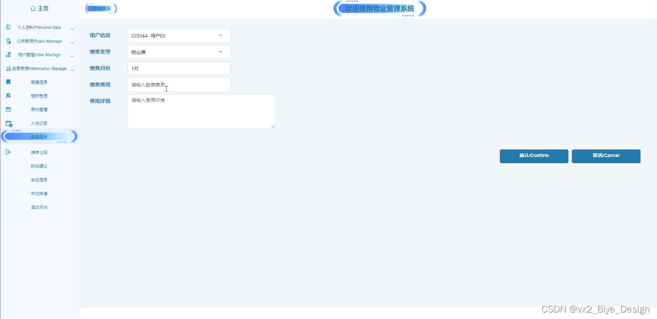 With the development of society, the advantages and popularity of computers make the development of property management system necessary. The property management system mainly uses computers to manage personal data (personal information, password modification), public management (broadcast map, bulletin board), user management (administrator, owner user), information management (housing information, information classification), housing information, building management, unit management, occupancy records, payment information, maintenance reports, complaints and suggestions, parking space information, parking space complaints and other information. Reduce the work of the administrator, and at the same time facilitate the owners to query and manage the property information in time.