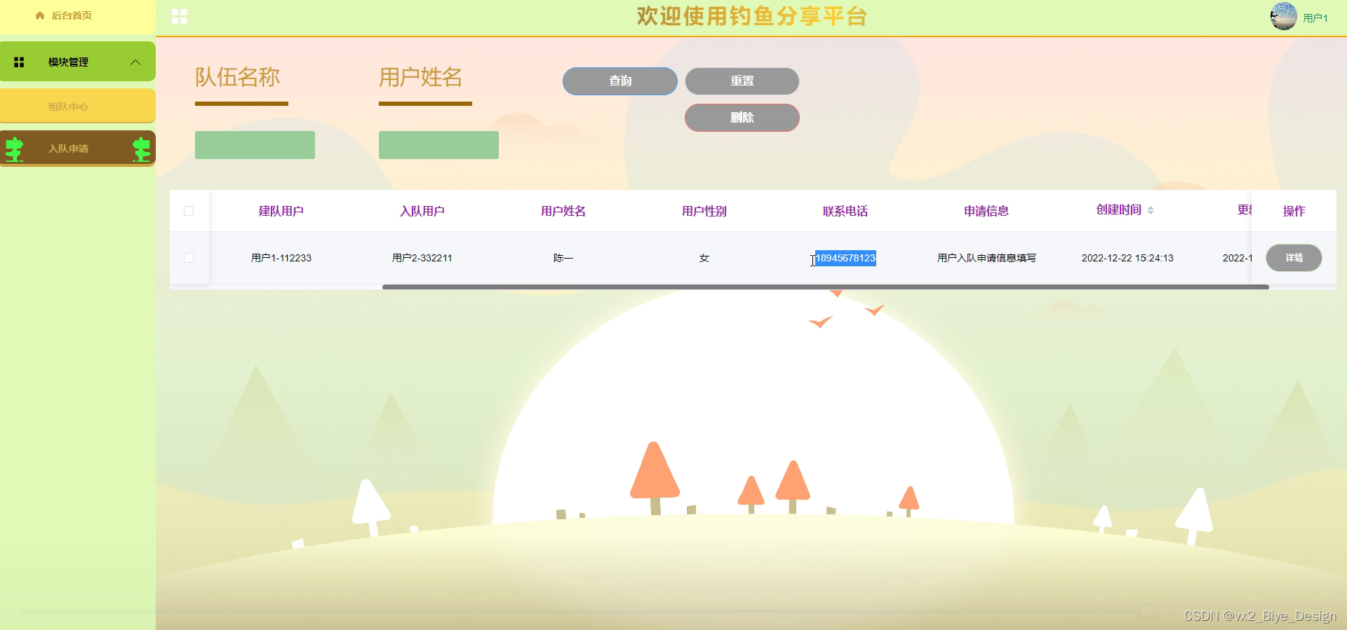 入队申请管理,在此页面可以对用户的入队申请信息进行维护管理。如图5-11所示。