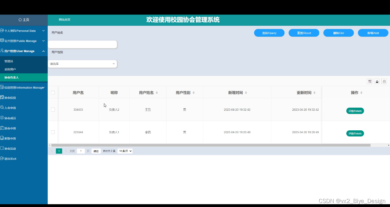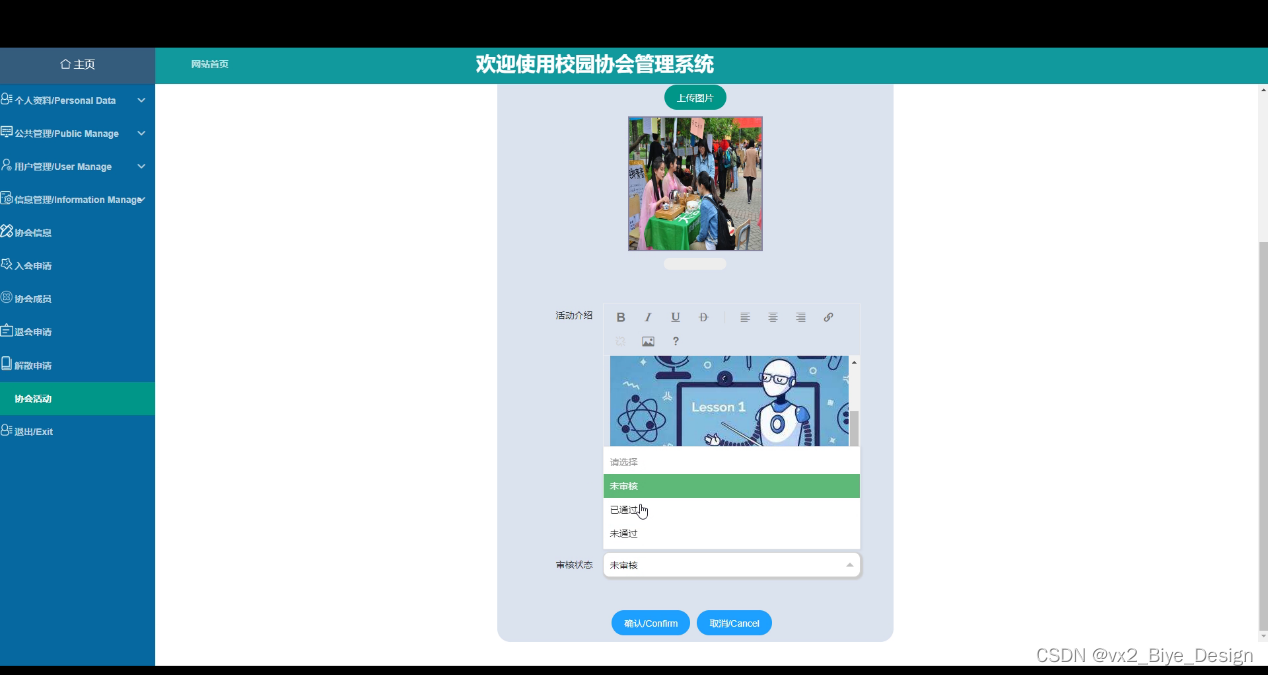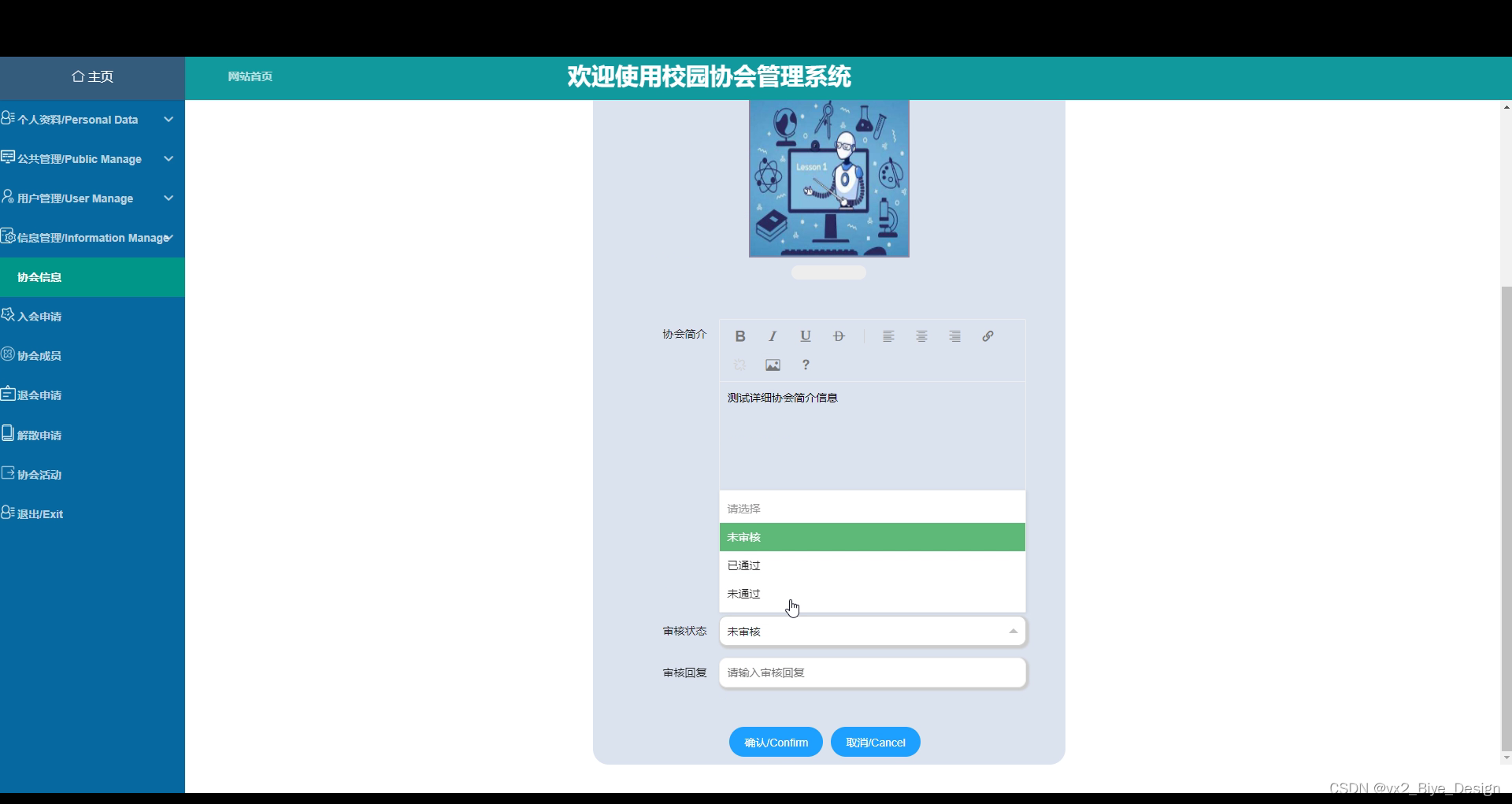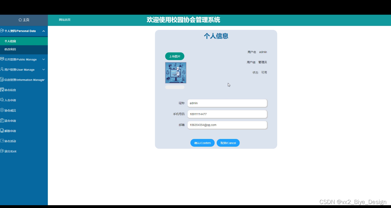 5.管理员功能,管理员可以对用户或者协会信息、入会信息等进行管理。