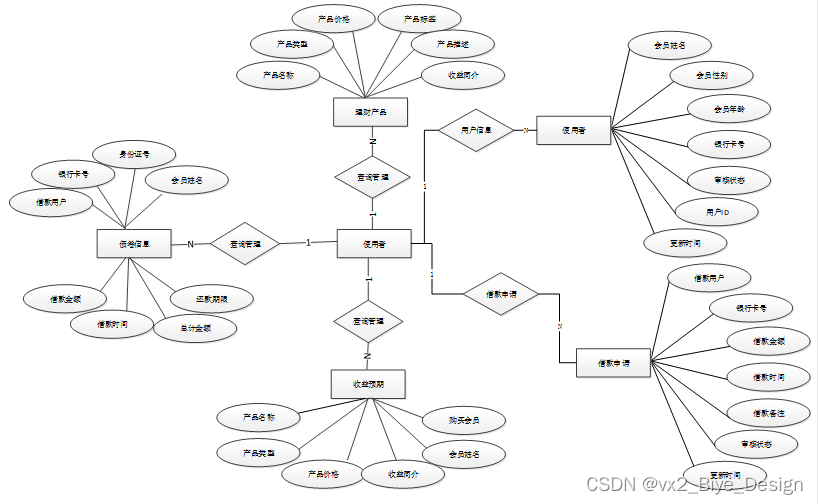 下面是整个p2p金融信贷平台中主要的数据库表总E-R实体关系图。