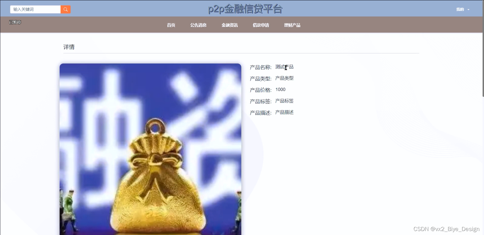 (7)理财产品:用户可以查看理财产品信息支持通过搜索关键词的方式对理财产品进行查询,在查询到自己想要了解的理财产品的时候,可以进入查看详细的介绍。