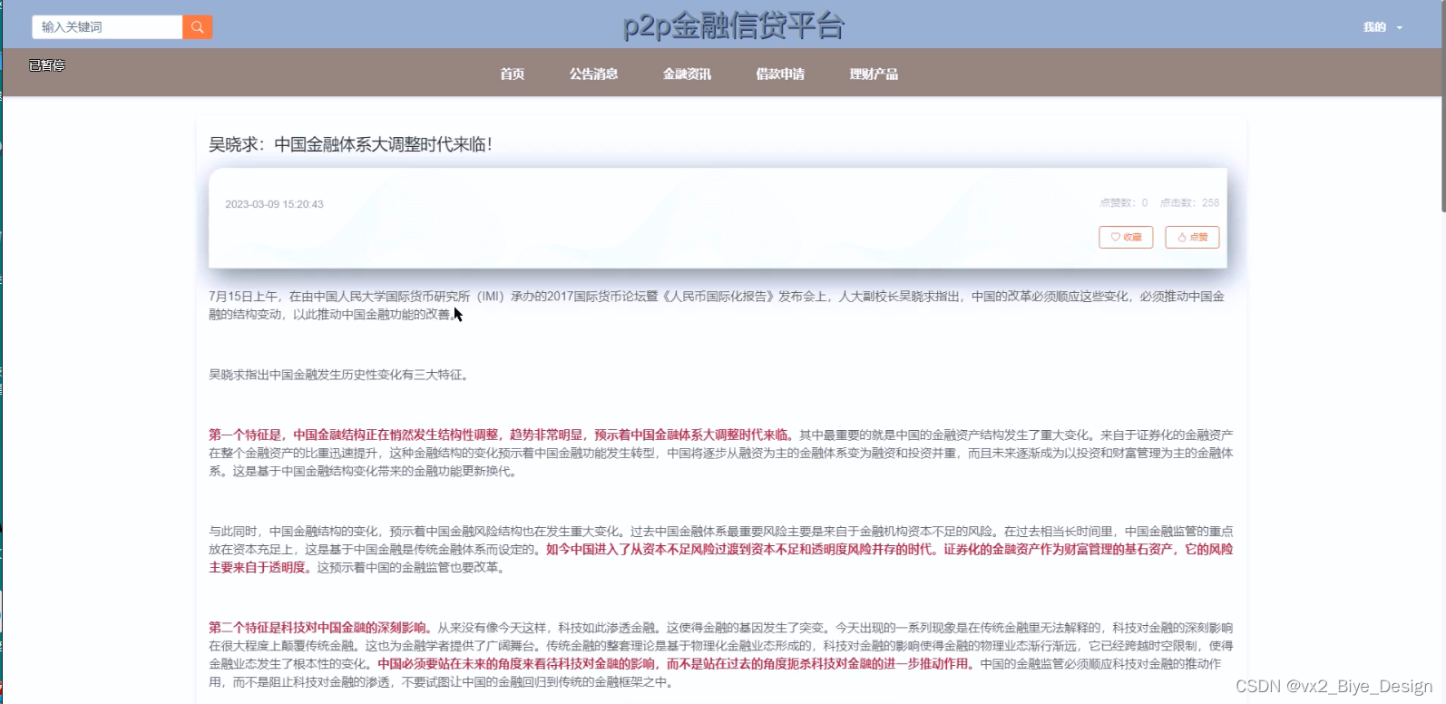 (3)金融资讯:用户可以查看金融资讯信息,在查询到自己想要了解的金融资讯的时候,可以进入查看详细的介绍进行评论、点赞、收藏操作。