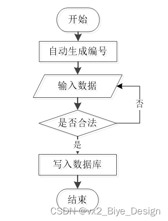 对于汽车租赁系统,需要随时添加所需要的数据信息,对于用户添加信息,需要根据添加界面,根据选框的内容进行填写所要添加的数据信息,信息输入完成后判断数据信息是否符合要求,符合要求则添加完成,用户所添加的信息不符合要求,则需要返回到第一步,重新输入数据信息,再进行判断操作,如图3-2所示。