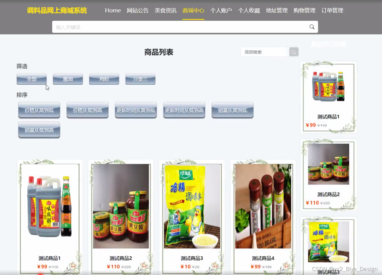 调料品网上商城系统采用Java编程语言,结合前段界面和MVC技术,在Myeclipse编辑器和Mysql数据库上设计并实现的。目的在于呈现一个完整的交易系统,供各种用户使用,系统着重实现了商品发布、出售、交易的功能。