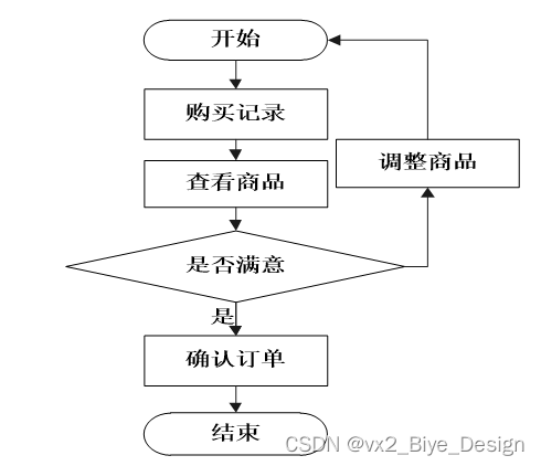 根据系统的功能需求,再分析该系统的业务流程,用户登录系统购买商品,先将商品加入至购物车,然后对购物车做调整,接着生成订单,订单生成后,在线支付金额,管理员管理商品,管理用户的订单。