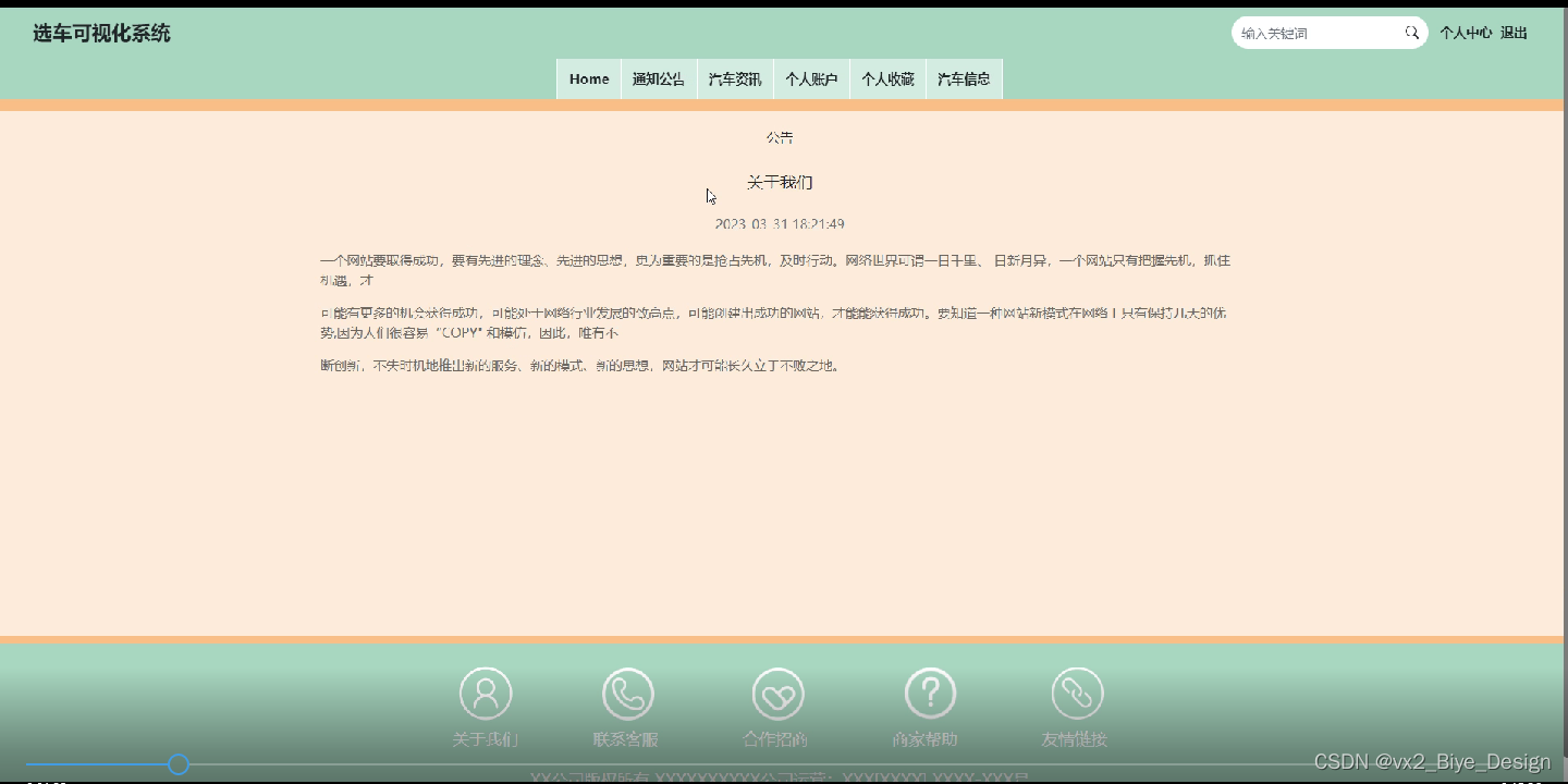 首页,通知公告汽车资讯、个人账户、个人收藏、汽车信息等。