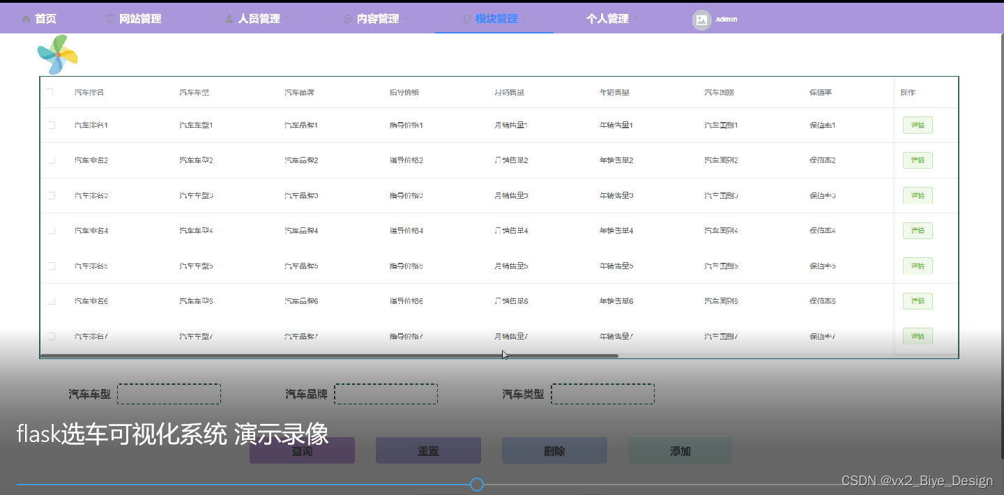 关键词:选车可视化系统;Python;Flask框架;Mysql数据库