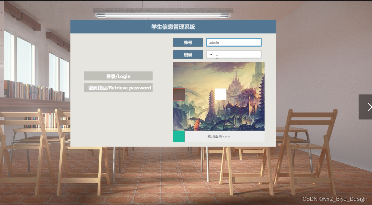 用户登录通过号、密码、登录用户类型行页面,进入到学生信息管理系统主界面,进入到操作界面,进行相对应操作,如图5-1所示。