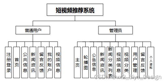 系统所要实现的功能分析,对于现在网络方便的管理,系统要实现用户可以直接在平台上进行查看所有数据信息,根据需求可以进行在线添加,删除或修改信息,这样既能节省时间,不用再像传统的方式耽误时间,真的很难去满足用户的各种需求。所以短视频推荐系统的开发不仅仅是能满足用户的需求,还能提高管理员的工作效率,减少原有不必要的工作量。