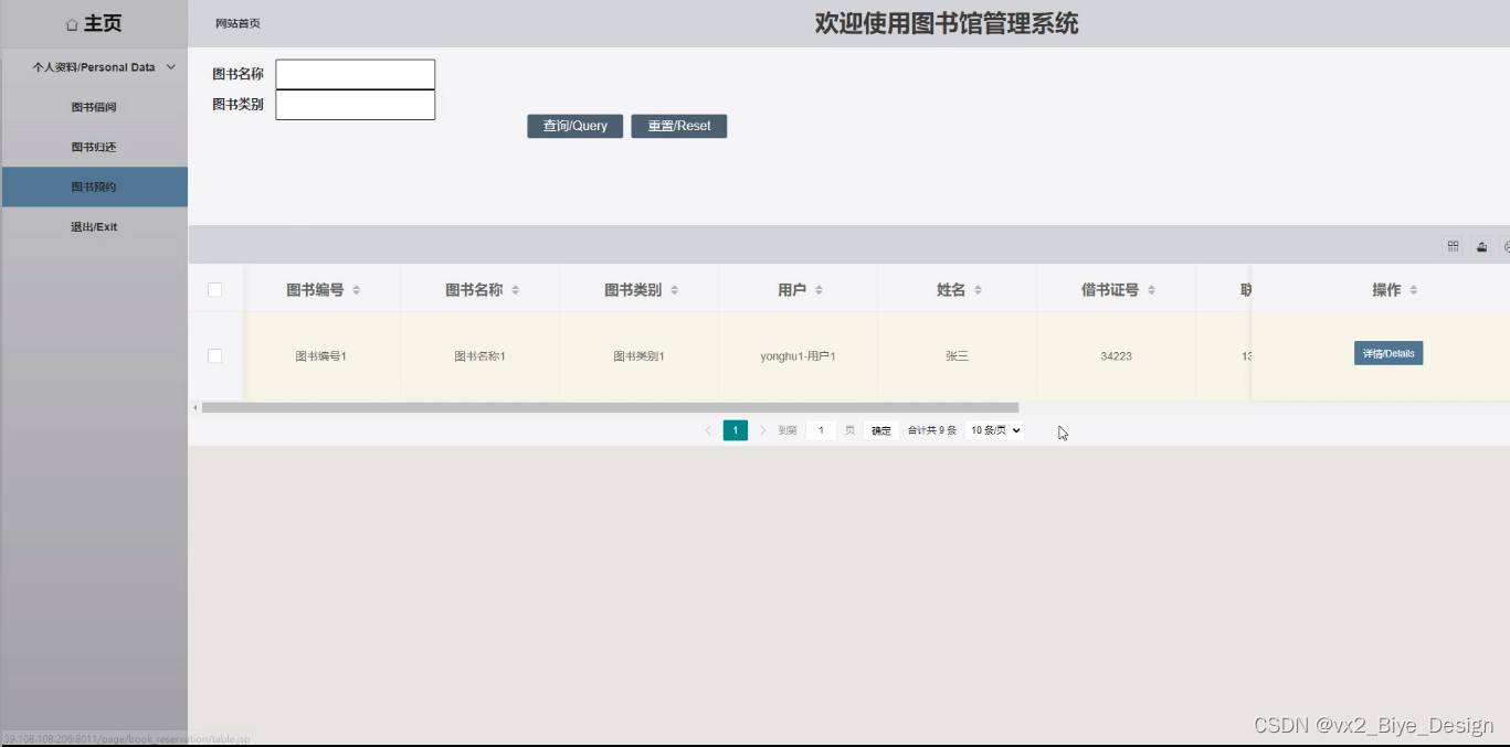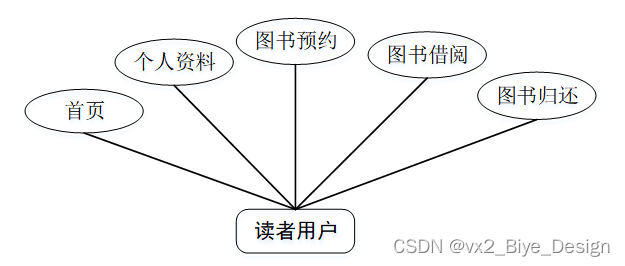 读者用户实现功能包括个人资料(个人信息、修改密码)、图书借阅、图书归还、图书预约等功能。读者用户例如图3-8所示。