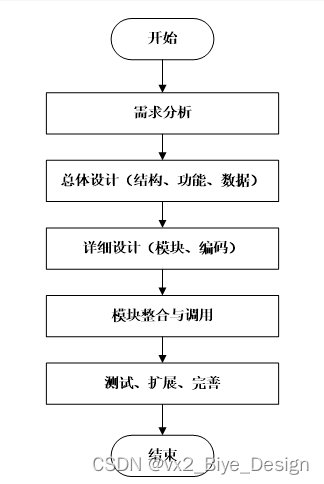 基于ssm图书馆管理系统开发时,首先进行需求分析,进而对系统进行总体的设计规划,设计系统功能模块,数据库的选择等,本系统的开发流程如图3-1所示