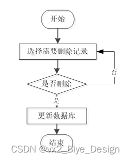 管理员可以对图书馆管理等进行信息的删除,对要删除的信息进行选中后,点击删除按钮,系统会询问是否确定,若点击确定,则系统会删除掉选中的信息,并在数据库内对信息进行删除,删除信息流程图如图3-6所示。