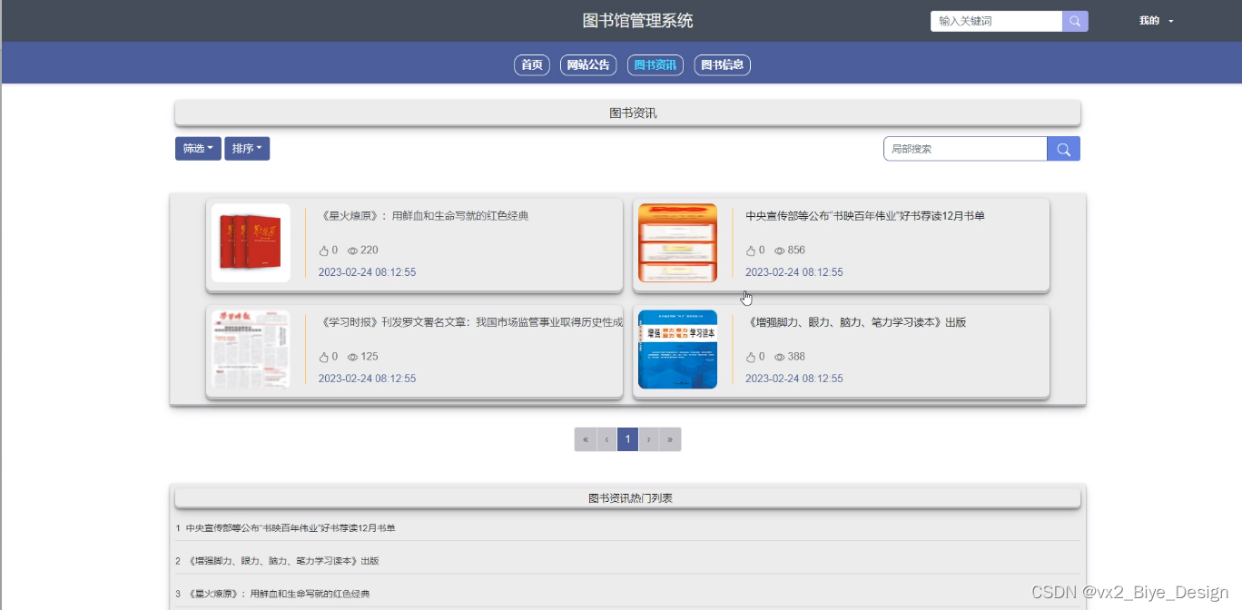 图书资讯,在图书资讯页面可以查看标题、图片发布人、发布时间、内容等信息,进行点赞、收藏、评论等操作,如图5-3所示。