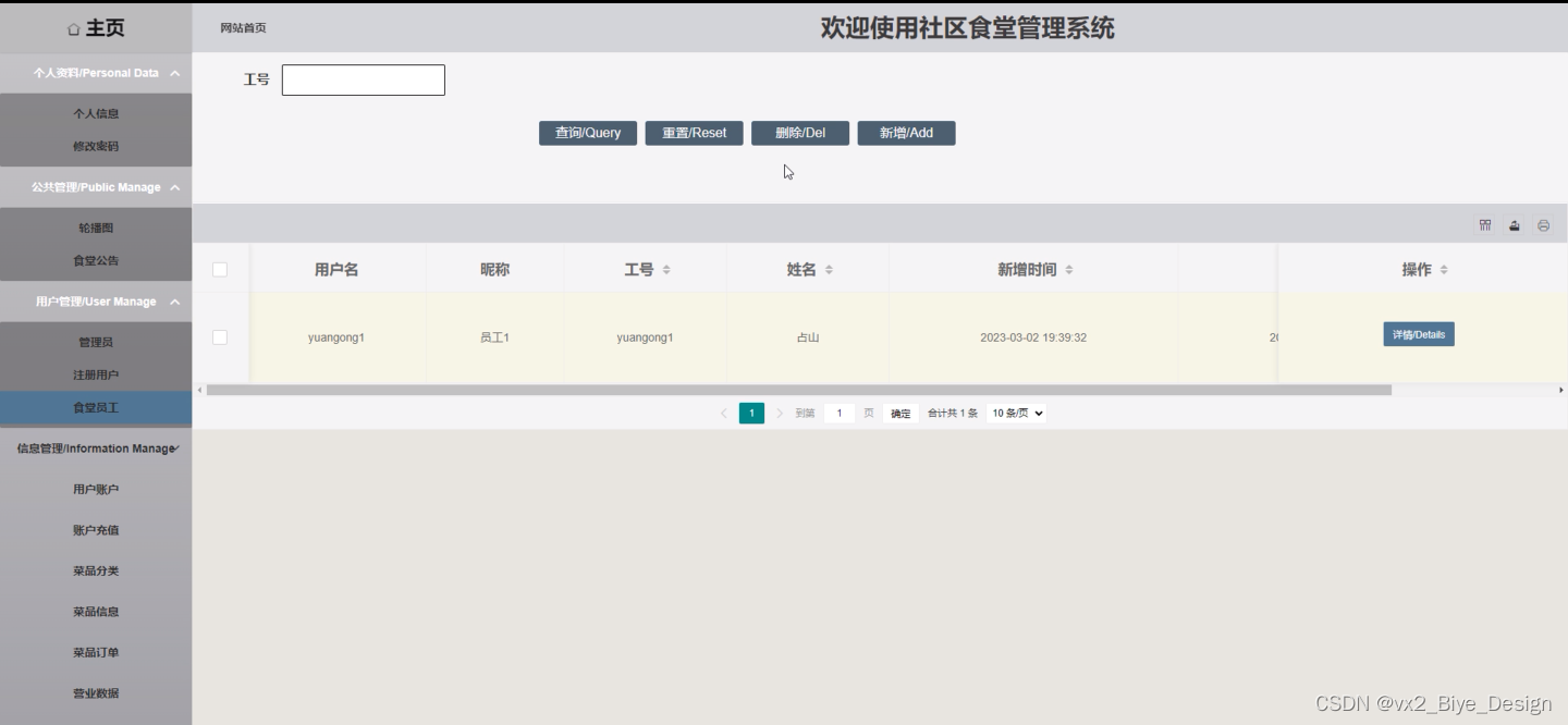 菜品信息:用户可以更多地了解有关 菜品信息,食堂员工可以对菜品信息进行增删改查等相应的操作。