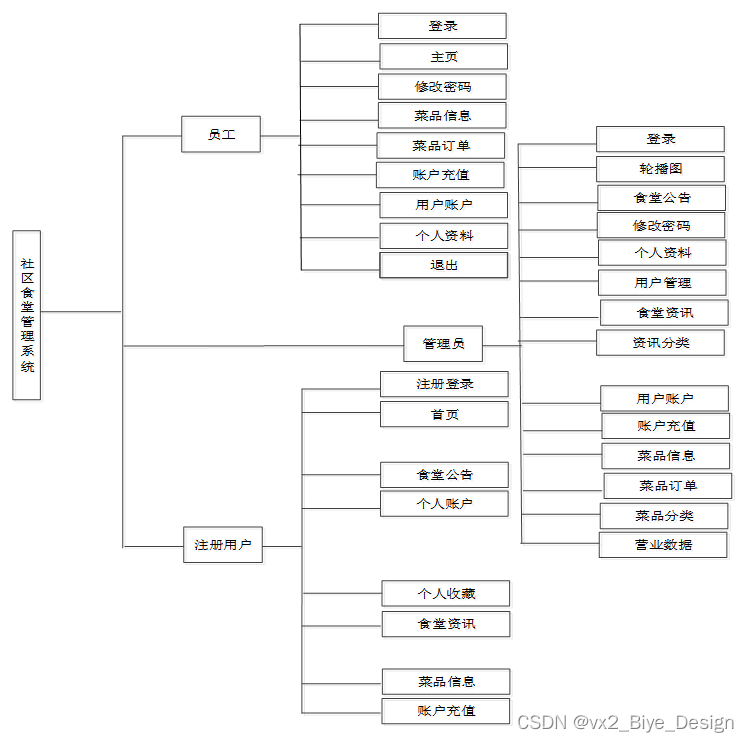 社区食堂管理系统总体分为前台用户模块和后台管理员模块。