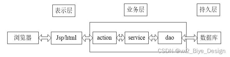 目前B/S体系的系统主要的数据访问方式是:通过浏览器页面用户可以进入系统,系统可以自动对用户向服务器发送的请求进行处理,处理请求是在系统后台中进行的,用户在浏览器页面上进行相应操作,就能够看到服务端传递的处理结果。大学生奖学金申报系统主要分为视图-模型-控制三层架构设计。在视图层中,主要是操作在服务器端向客户端反馈并显示的数据,在模型层中,主要处理相关的业务逻辑、数据整合等,最后的控制层它介于视图和模型之间,主要是调整两层之间的关系,最终落实数据的传递。