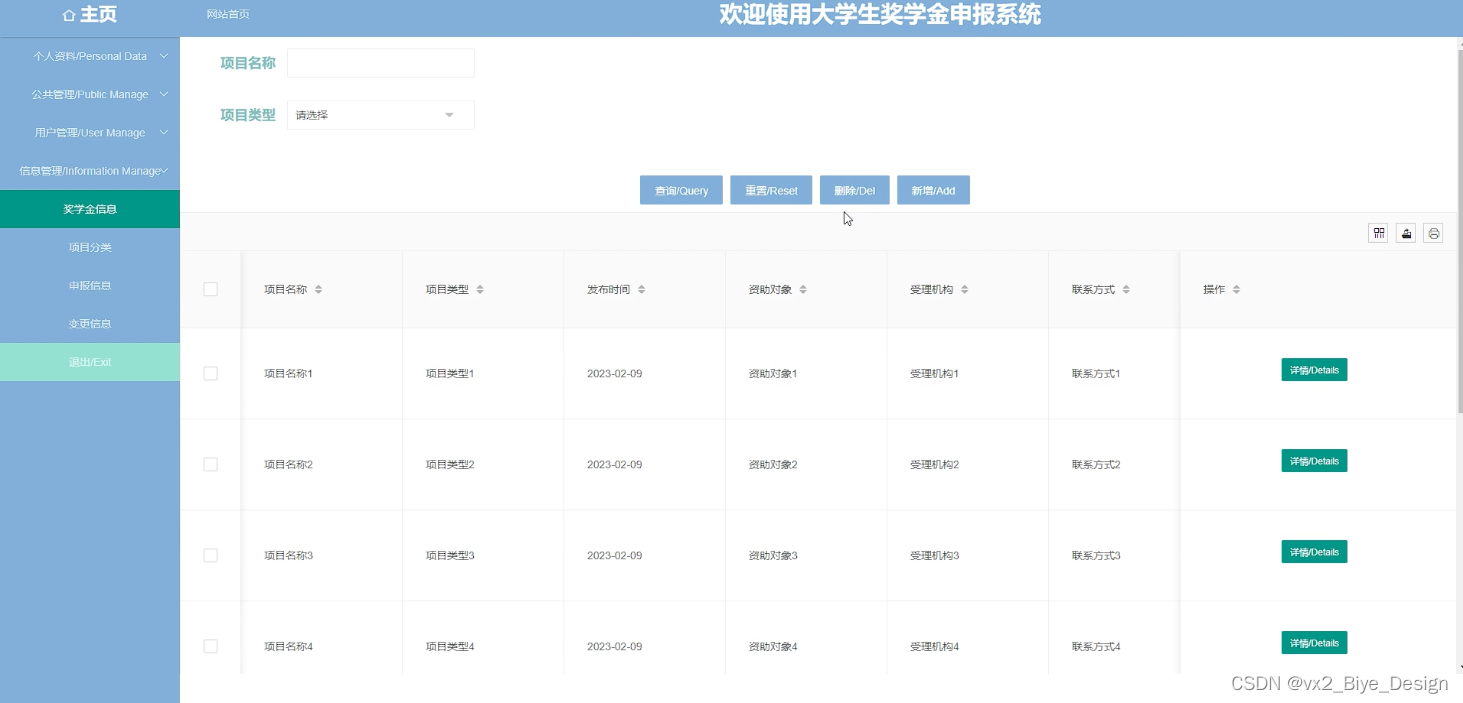 根据奖学金申请维护的流程,学生提交奖学金申请数据,在个人后台便可以查看到历史提交的奖学金申请数据,管理员来维护奖学金申请数据,审批确认已存在的奖学金申请数据。