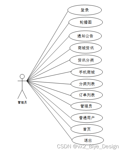 web后台管理上的管理员是维护整个华强手机商城中所有数据信息的。管理员角色用例如图2-4所示。