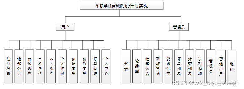 按照华强手机商城的角色,我划分为了普通用户和管理员这两大部分。