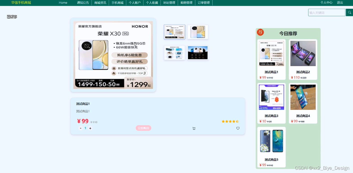 The database used by this Huaqiang Mobile Mall is MySQL, developed using JAVA technology. During the design process, the system code was fully guaranteed to have good readability, practicality, scalability, universality, ease of later maintenance, easy operation, and concise pages.