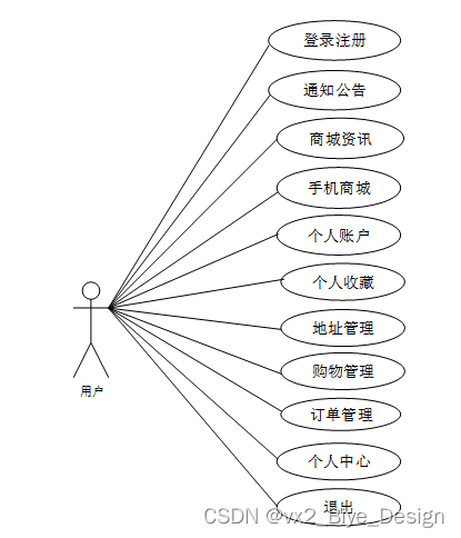 通过2.3功能的分析,得出了本华强手机商城的用例图: