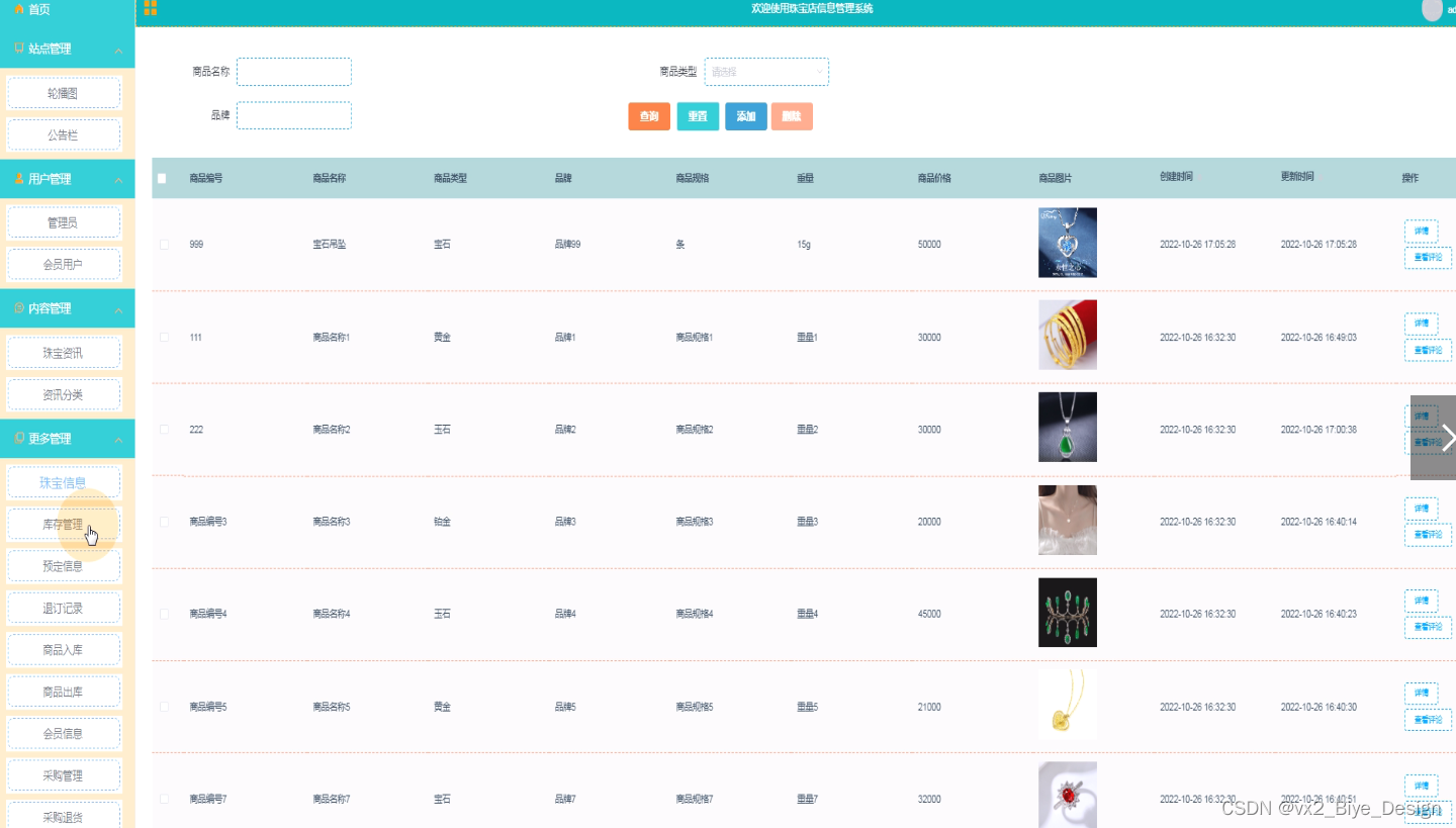 (2)商品管理:主要包括商品列表、商品类目管理、商品添加、珠宝信息管理等功能。