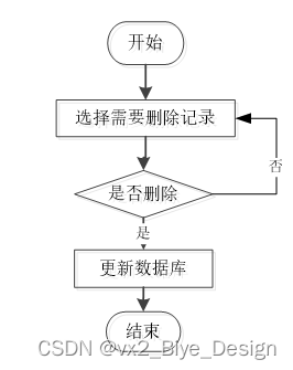用户可选择要删除的信息进行信息删除操作,在删除信息时系统提示是否确定删除信息,是则删除信息成功,系统数据库将信息进行删除。删除信息流程图如图2-4所示。