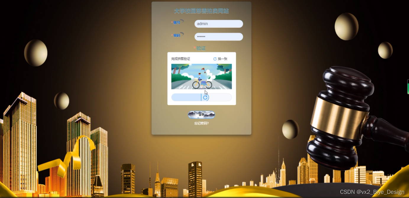 管理员登录,通过填写注册时输入的用户名、密码、滑动滑块验证进行登录,如图5-13所示。