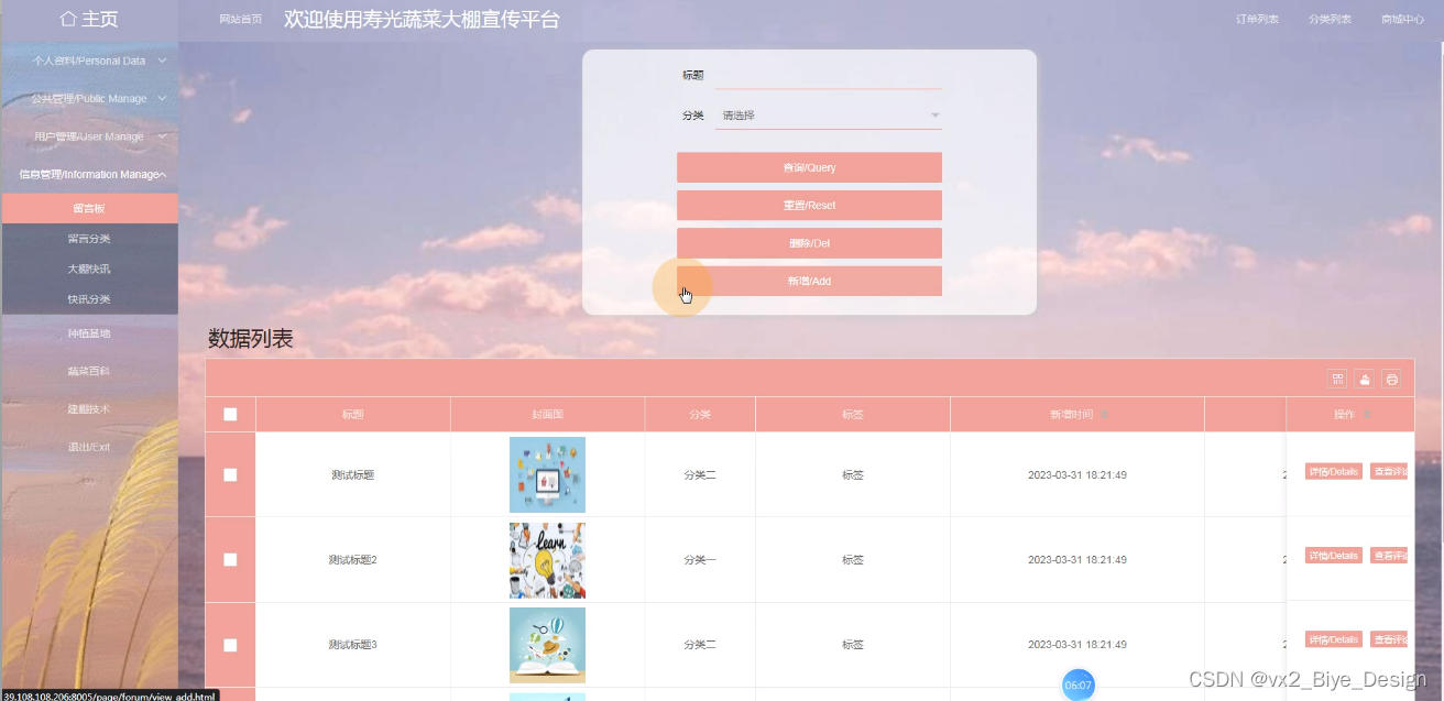 Keywords:Shouguang Vegetable Greenhouse Promotion Platform; MySQL database; PHP language; Thinkphp framework