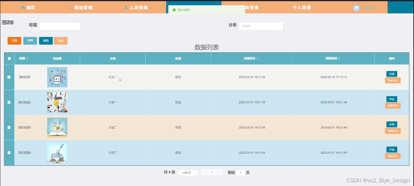 (3)网站管理:管理员可以对系统前台展示的轮播图以及公告通知进行增删改查,方便用户进行查看。
