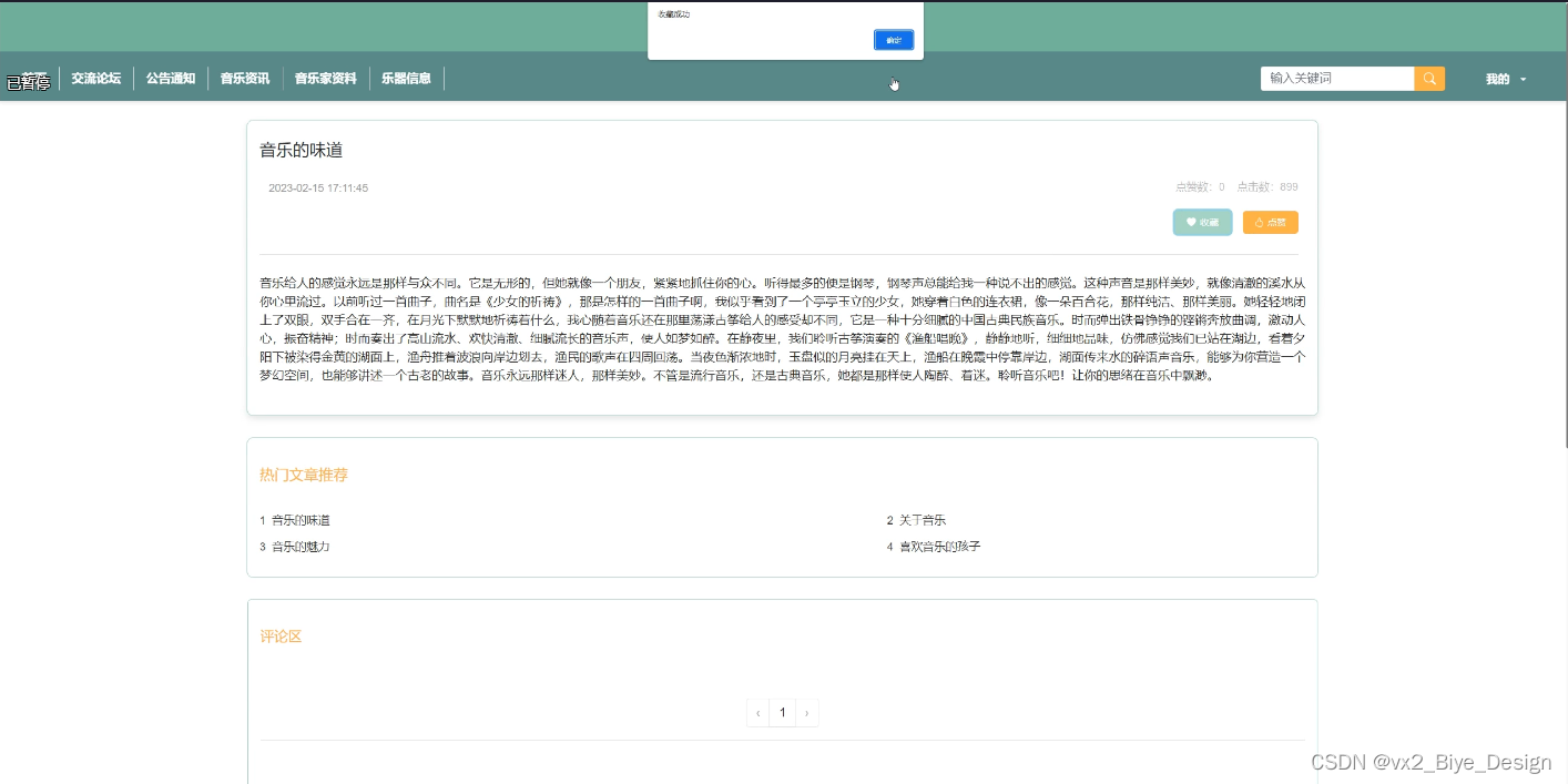 (4)音乐资讯:用户可以查看音乐资讯信息,在查询到自己想要了解的音乐资讯的时候,可以进入查看详细的介绍进行评论、点赞、收藏操作。