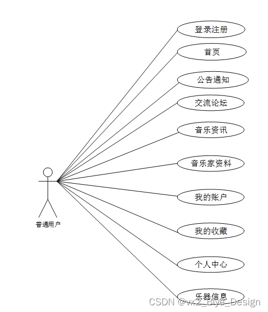 音乐交流平台中普通用户角色用例图如图2.1所示: