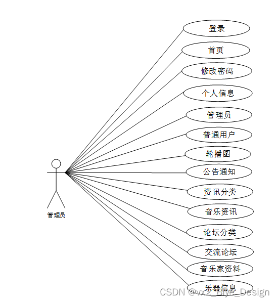 音乐交流平台中管理员角色用例图如图2.2所示: