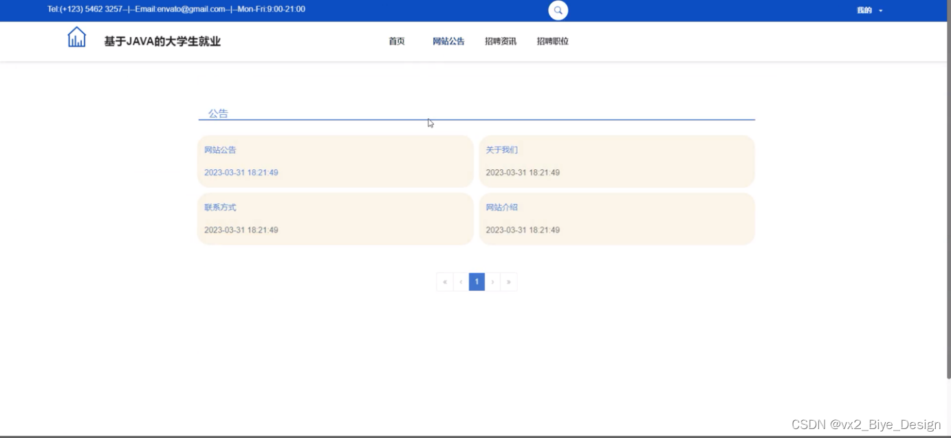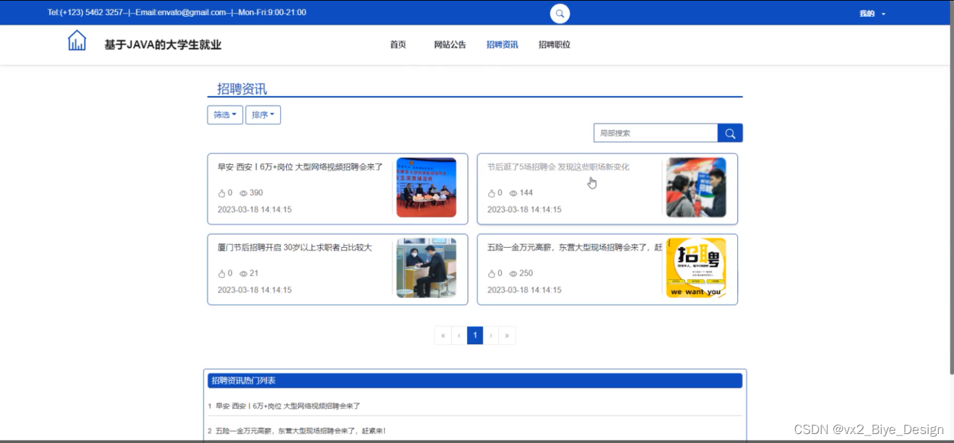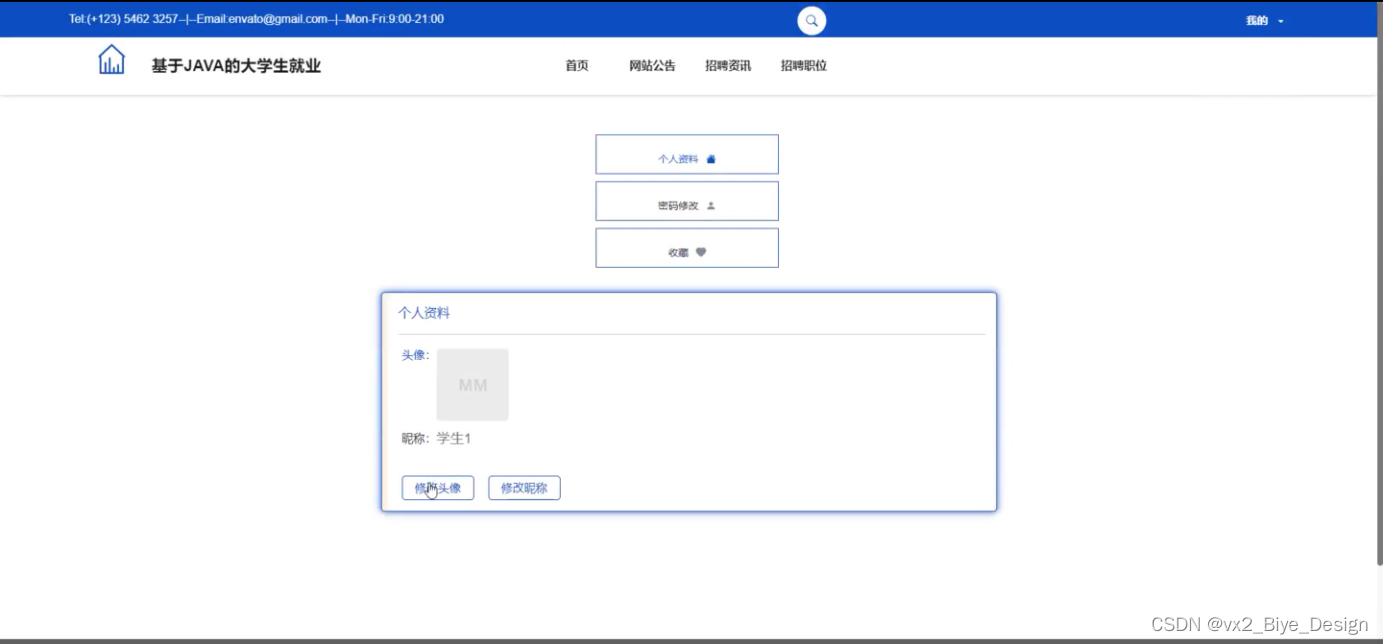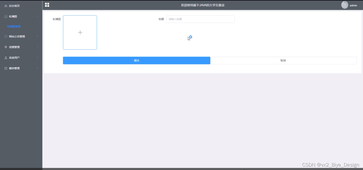 本系统设计的是一个大学生就业的网站,此网站使用户实现了不需出门就可以在电脑前进行网上查看后台首页、个人中心、轮播图管理、网站公告管理、资源管理(招聘资讯、资讯分类)、系统用户(管理员、学生用户、企业用户、普通管理者)、模块管理(职位分类、招聘职位、简历投递、面试邀请)等。不需亲临现场就可以在网站查看招聘信息和投递简历。