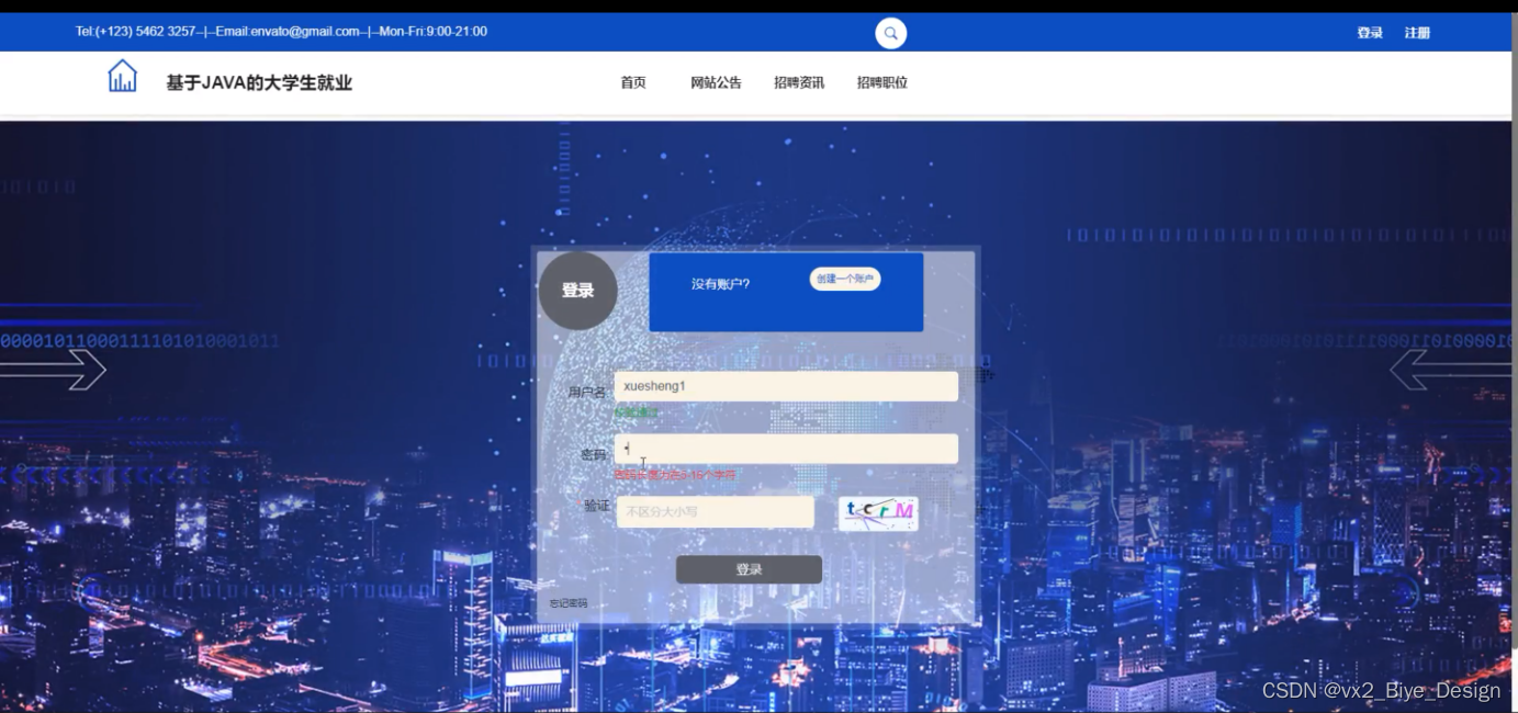 学生用户登录校大学生就业系统,在登录页面输入用户名、密码、验证等进行登录,如图5-1所示。