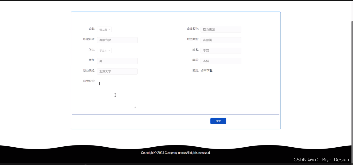 用户在首页上会看到各类模块的推送内容,可以以最直接的方式获取信息,注册登陆后,可以对应心仪的职位进行投递简历,并且在后台可以管理自己的首页、简历投递、面试邀请、个人资料(个人信息、修改密码)等。而企业则可以在后台直接管理和处理学生的简历信息和进行面试邀请等。本网站模块设计的独立性强,用户体验良好、后期维护修改管理十分方便。