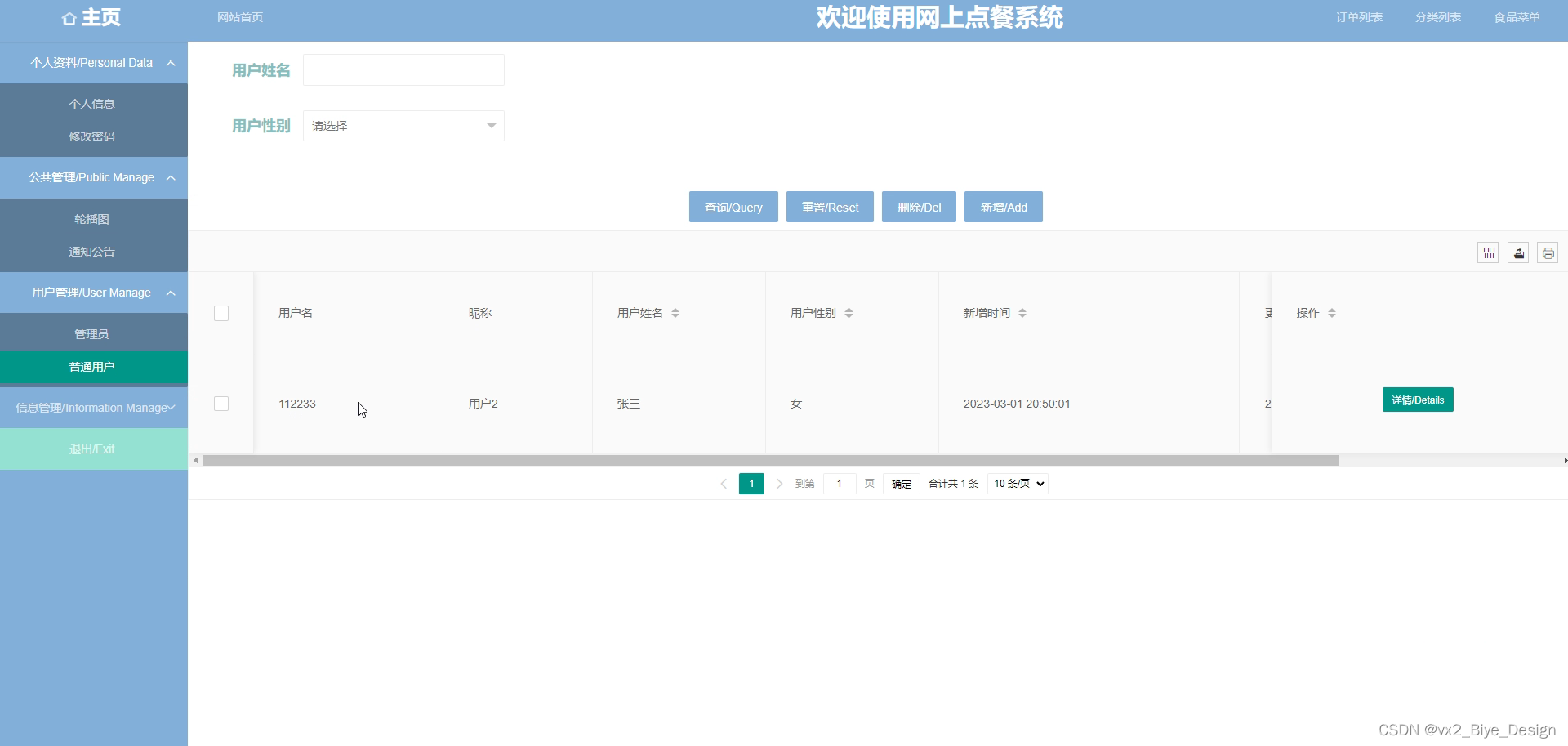 6.管理员功能,管理员可以对用户或者点餐进行管理。