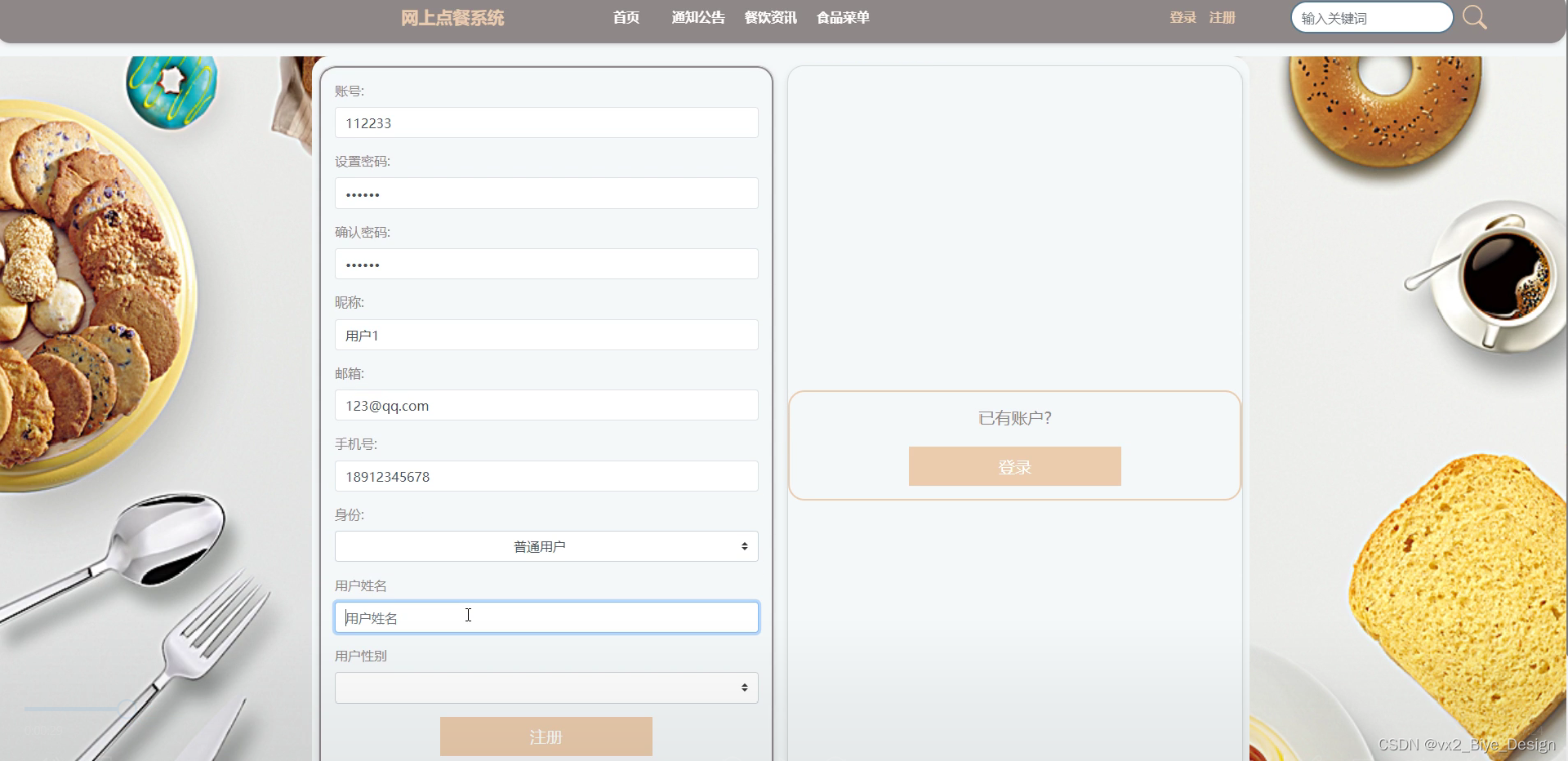 3.注册登录,餐饮需要吸引客户,即通过注册来提高用户的存留率。