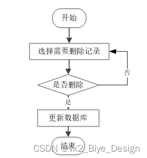 用户可选择要删除的信息进行信息删除操作,在删除信息时系统提示是否确定删除信息,是则删除信息成功,系统数据库将信息进行删除。删除信息流程图如图2-4所示。