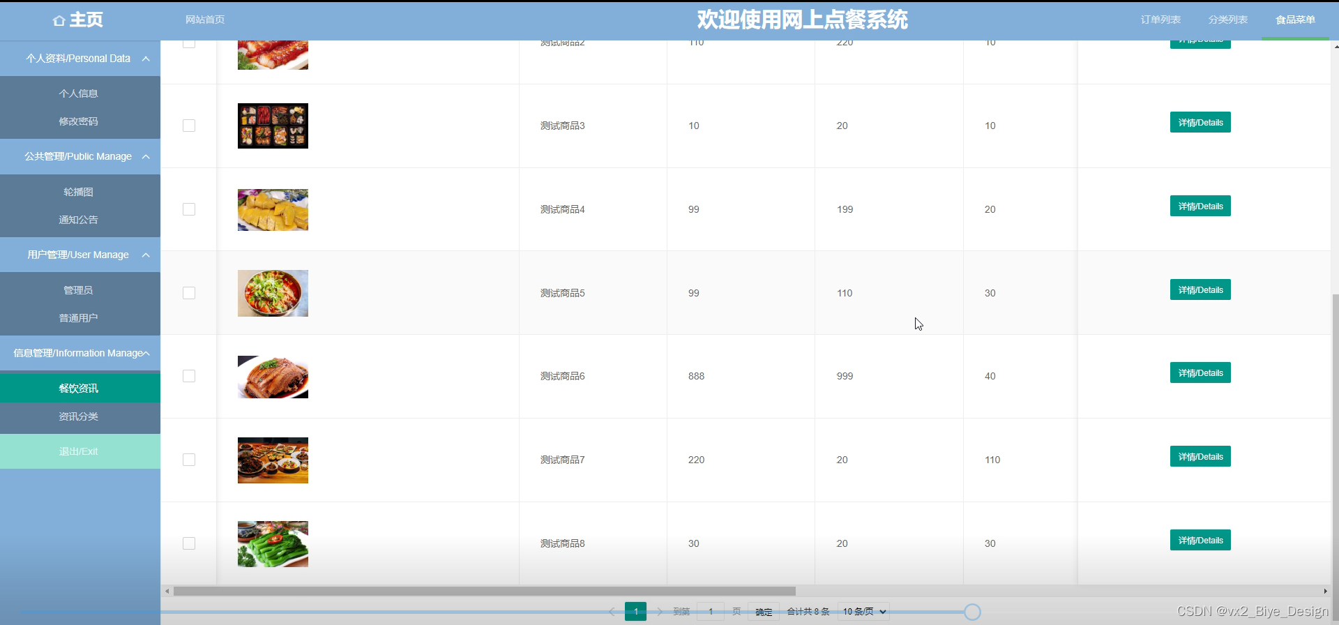 6.管理员功能,管理员可以对用户或者点餐进行管理。