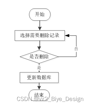 用户可选择要删除的信息进行信息删除操作,在删除信息时系统提示是否确定删除信息,是则删除信息成功,系统数据库将信息进行删除。删除信息流程图如图2-4所示。