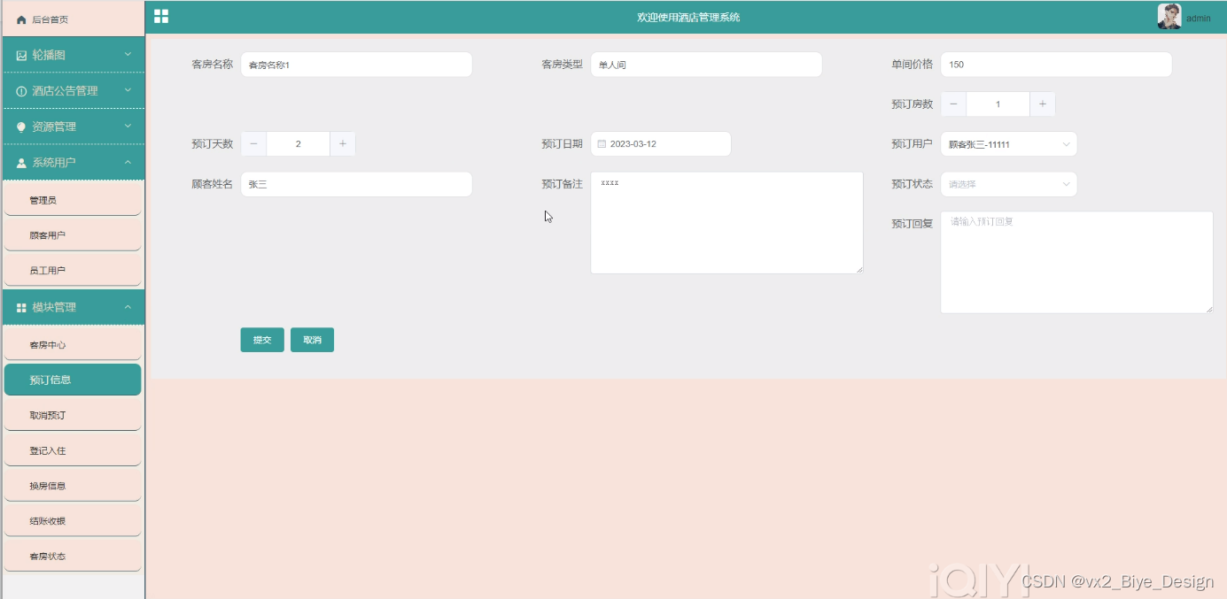 图5-3预订信息管理界面图