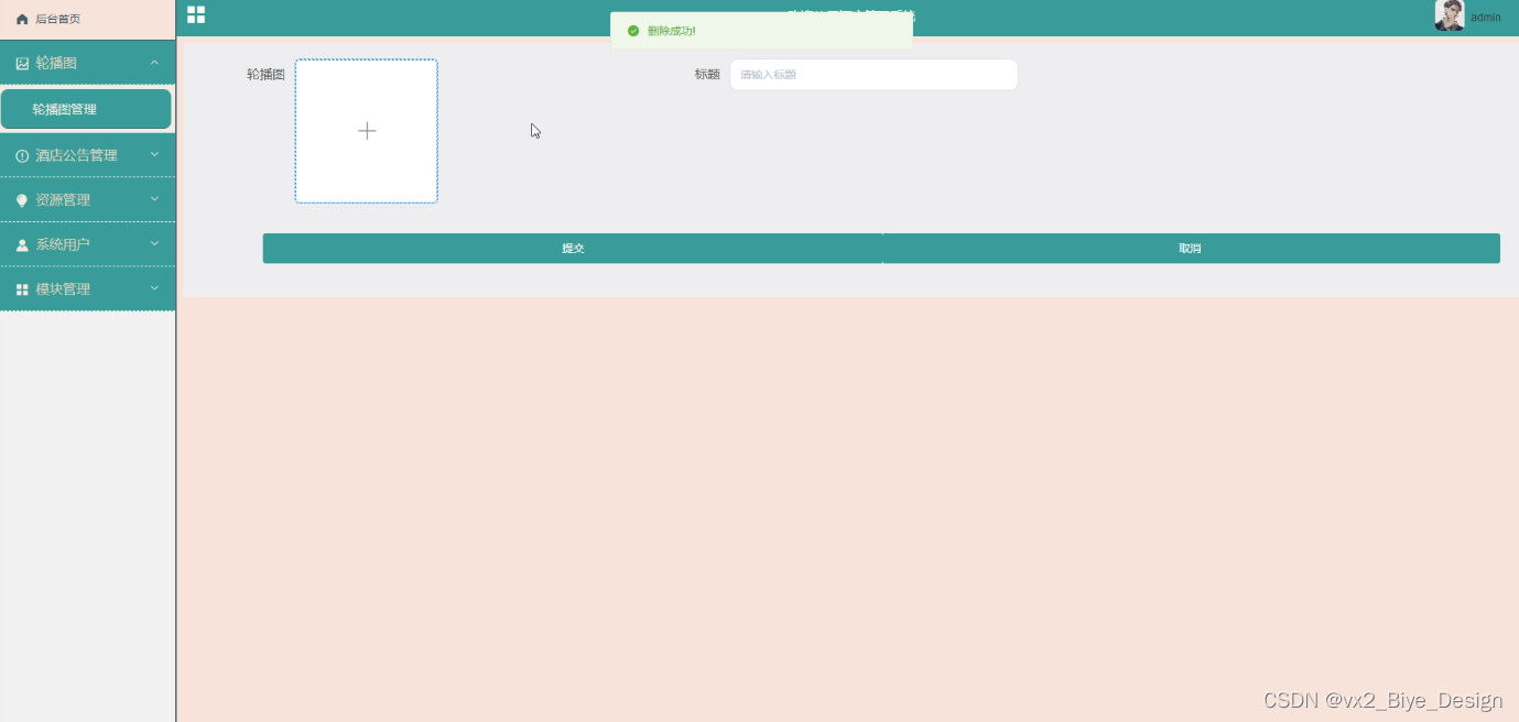 轮播图管理,在轮播图管理页面可以查看标题、轮播图等内容,并可根据需要进行查询或者删除等操作,如图5-4所示。