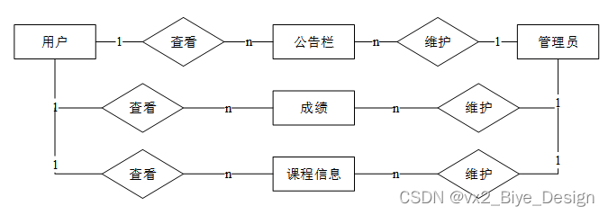 对于一个要开发的系统来说,E-R图可以让别人能更快更轻松的了解此系统的事务及它们之间的关系。根据系统分析阶段所得出的结论确定了在大学班级管理系统中存在着多个实体分别是用教师、学生、管理员、课程、成绩等。
