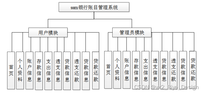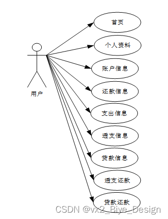 用户模块:主页、个人资料、账户信息、存款信息、支出信息、透支信息、贷款信息、透支还款、贷款还款。