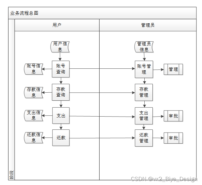根据用户对系统的需求,要求系统简单操作,能够准确,完整的对信息进行管理。银行账目管理系统在对需求做解析后,整个系统主要分为两个部分:管理员和普通用户,每个模块下的分支功能不一样。对功能做出如下说明: